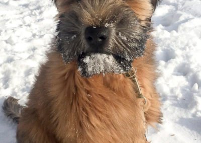 We were able to visit the puppies before bringing Fitz home. We felt very involved through the entire process. Esther also did a great job with the early stages of training so thankfully, potty training and socializing was already well underway when Fitz came home.