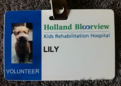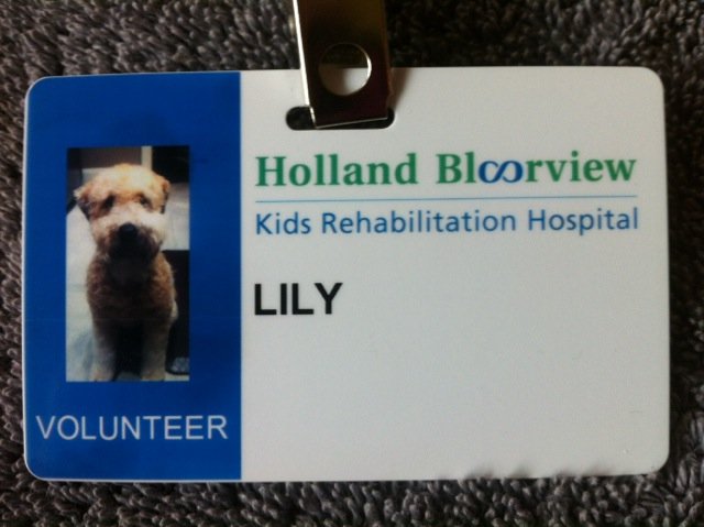 I know it’s been far too long since I let you know how Lily is doing. She is wonderful and has been such a great addition to our family over the last 3 years. In September, she started volunteering with me at Bloorview, the kids rehab hospital here in Toronto. All the kids love her and how affectionate and soft she is.